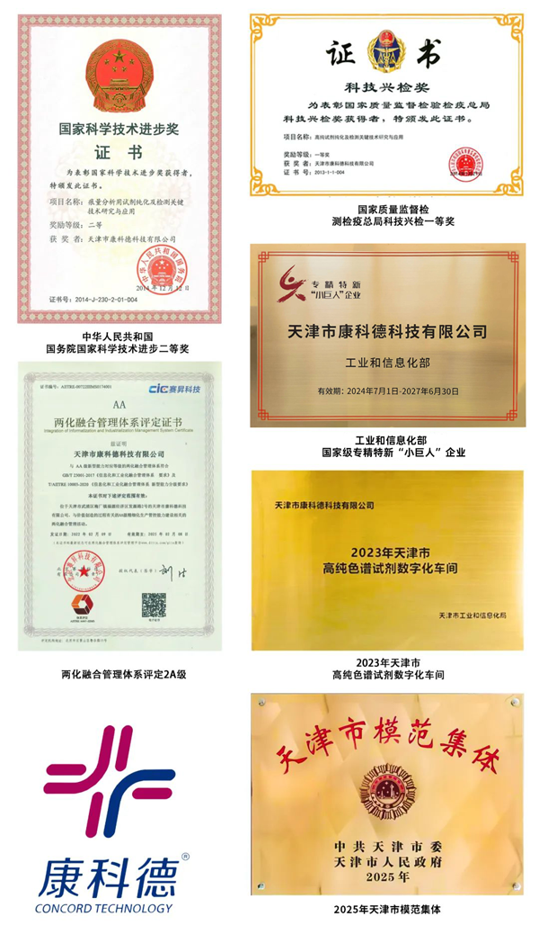 1996年9月17日天津市康科德科技有限公司成立,專注高純化學試劑研制、開發和生產。主要產品包括高純色譜試劑、卡爾費休試劑、無水溶劑、高純溶劑等。主要服務于制藥、石化、科研、高校等行業和領域。29年來,榮獲國家科技進步二等獎1項,國家質監總局科技興檢一等獎1項??悼频鲁砷L為國家級專精特新“小巨人”,獲市級智能制造示范項目、先進級智能工廠、天津市模范集體等多項殊榮,產品替代進口并出口30個國家和地區。這離不開各方支持,我們心懷感恩,砥礪前行。