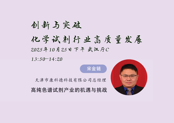 10月25日下午,“創(chuàng)新與突破—化學(xué)試劑行業(yè)高質(zhì)量發(fā)展”分會場將在武漢廳C舉行。分會場以“主題報告+高端對話”形式開展,聚焦試劑生產(chǎn)、高純色譜、生物醫(yī)藥用試劑、功能性替代品及科研試劑生態(tài)構(gòu)建等關(guān)鍵領(lǐng)域,共同探討行業(yè)高質(zhì)量發(fā)展路徑。屆時,康科德公司宋金鏈總經(jīng)理將發(fā)表題為《高純色譜試劑產(chǎn)業(yè)的機遇與挑戰(zhàn)》的專題報告,深入剖析當(dāng)前高純色譜試劑產(chǎn)業(yè)所面臨的發(fā)展機遇與關(guān)鍵挑戰(zhàn),分享公司在應(yīng)對行業(yè)痛點、推動產(chǎn)業(yè)升級方面的實踐與思考,為與會者提供前瞻視角與解決方案。