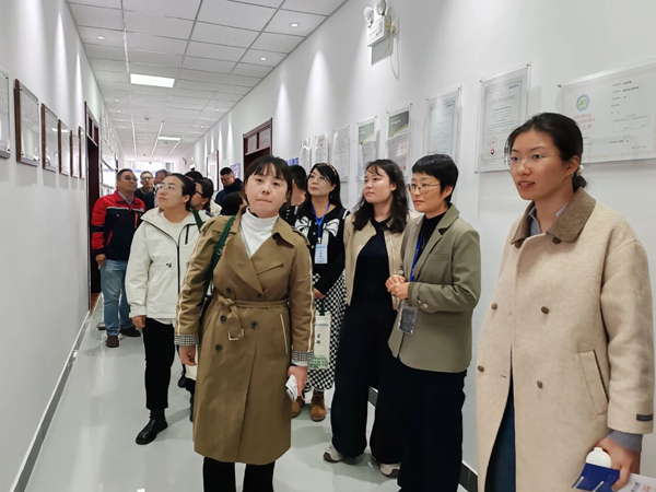 活動伊始,教師團隊在公司高層管理人員的陪同下,先后走進產品展室、核心實驗室、研發成果展示區及智能化生產車間。在產品展室,老師們詳細了解了公司30年來在高純試劑領域的技術迭代與產品矩陣;實驗室里,專業人員現場演示了試劑純度檢測的核心流程,精密儀器的運作與嚴謹的質控標準讓老師們直觀感受到企業的技術實力;研發成果展示區,一幅幅技術圖譜串聯起公司30年的創新軌跡。