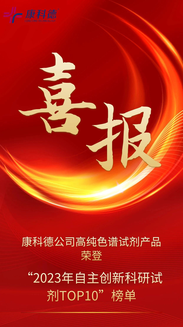 在2023年首屆實驗室試劑發展論壇上,康科德高純試劑榮獲了中國檢驗檢測學會頒發的自主創新科研試劑TOP10獎項!