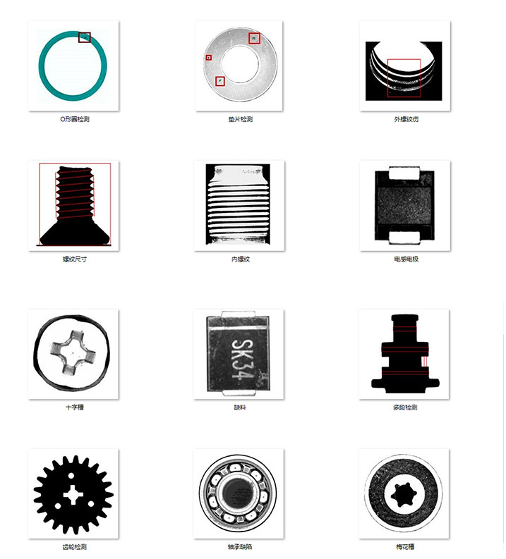 從底向上拍攝產(chǎn)品,檢測:內(nèi)孔徑,花齒高度,缺齒,同心距,堵孔,內(nèi)孔變形,投影面毛刺以及其它投影面所能反應出來的項目。 |
